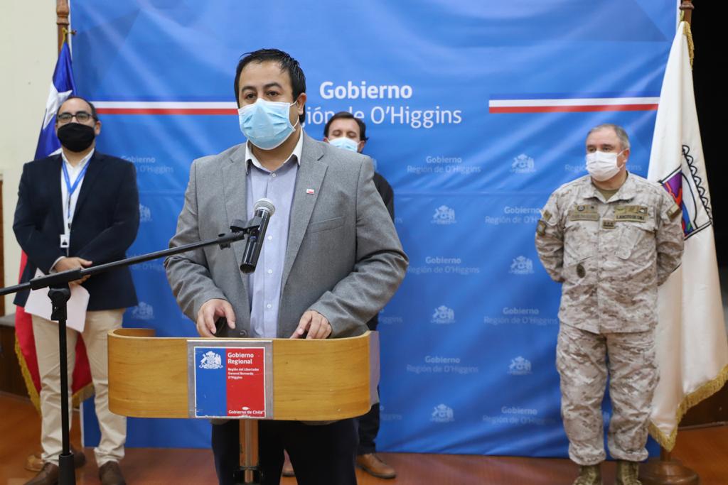 Un nuevo reporte entregó el Gobierno Regional de O’Higgins pasado el mediodía de este domingo, en donde se comunicó de 37 casos nuevos en la región y de una persona fallecida. Así lo informó el Gobernador de Cachapoal, Felipe Uribe, quien estuvo acompañado por el Jefe de Estado Mayor de la Defensa Nacional, Coronel Patricio Amengual; por el Director del Servicio de Salud O’Higgins, Fabio López; y por el Jefe de Comunicaciones de la Seremi de Salud, Gabriel Arcas.