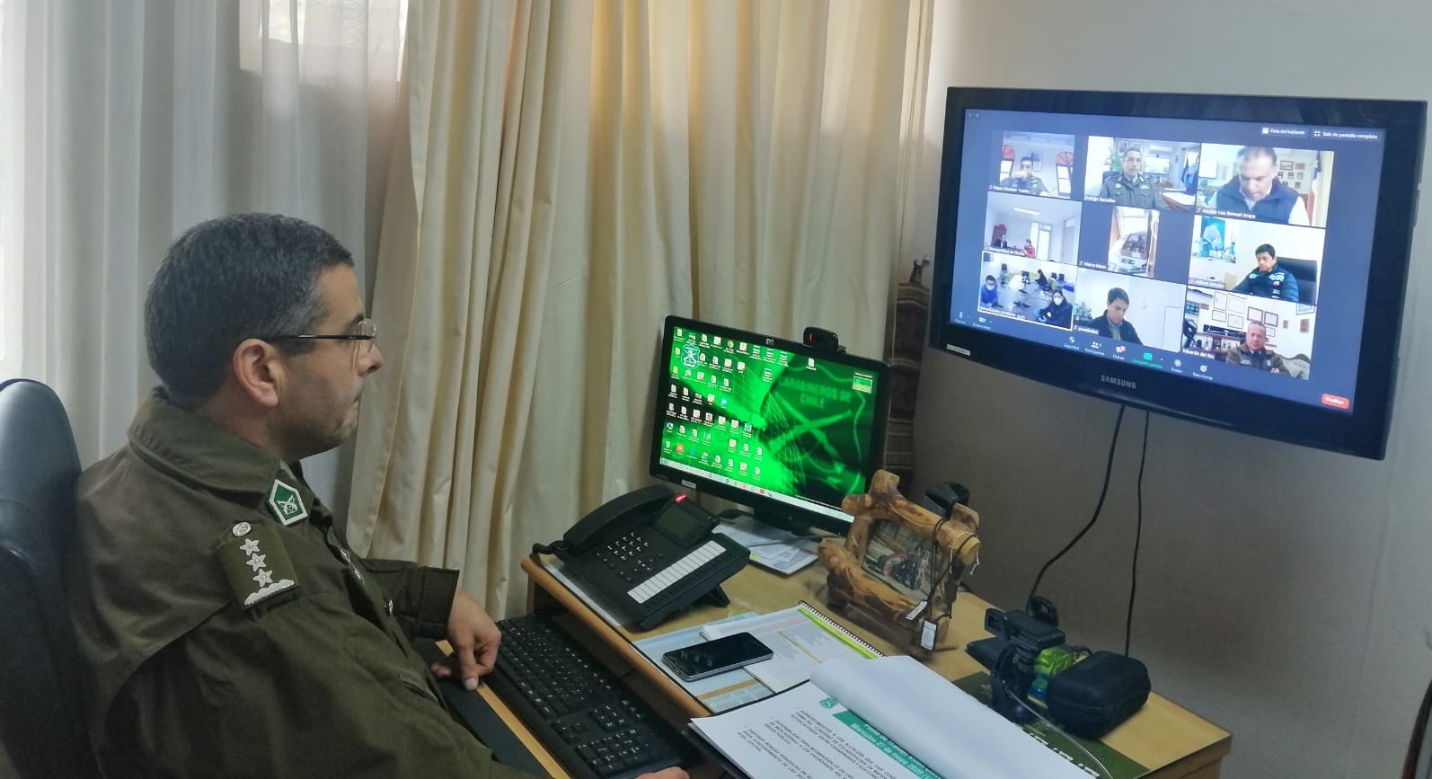 El prefecto de la Prefectura de Carabineros Colchagua, coronel Rodrigo Bascuñán sostuvo una reunión mediante video conferencia con los 10 alcaldes de esta provincia.