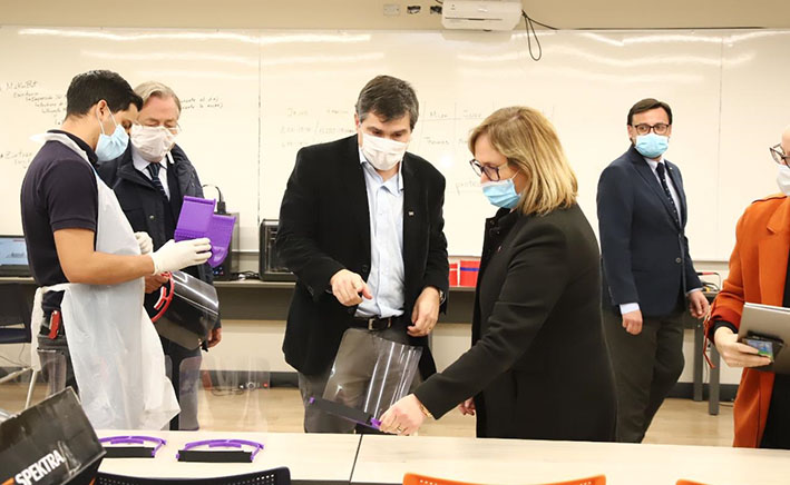 Por otra parte, la Intendenta Rebeca Cofré precisó que: "Hoy día la universidad también es un actor importante en todo lo que está ocurriendo y están enfrentando la pandemia. Ellos están por una parte haciendo estudios, que tienen que ver con el seguimiento, la movilidad de la ciudadanía en nuestra región y que estamos considerando mucho en la toma de decisiones. En segundo lugar, están fabricando unas máscaras que son para el sistema de Salud, que nos ayuda también en la protección del Coronavirus. Pudimos ver la fabricación que se realiza al interior de la universidad".