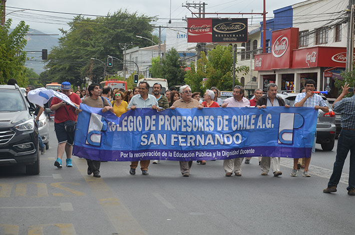 De acuerdo a lo señalado por el secretario general del Colegio de Profesores de Colchagua, Sergio Díaz, el programa se va a iniciar aproximadamente a las 10:30 horas en la Plaza de Armas con un acto cultural en el que intervendrán los máximos dirigentes de los docentes a nivel regional y provincial. Luego a las 12 horas se iniciará la marcha hacia el centro de San Fernando. La columna saldrá del frontis de la Municipalidad por calle Carampangue, para seguir por avenida Manuel Rodríguez, hasta calle Rancagua. De ahí, el grupo retornará por la misma arteria hasta calle Valdivia para terminar su recorrido en la Plaza de Armas de la capital de la provincia de Colchagua.