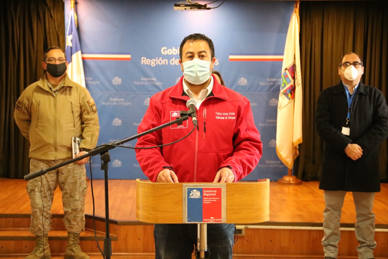 Respecto al toque de queda informó que fueron detenidas 84 personas, por infringir tanto el toque de queda. De ellas 47 detenidas en Rancagua y Machalí.
