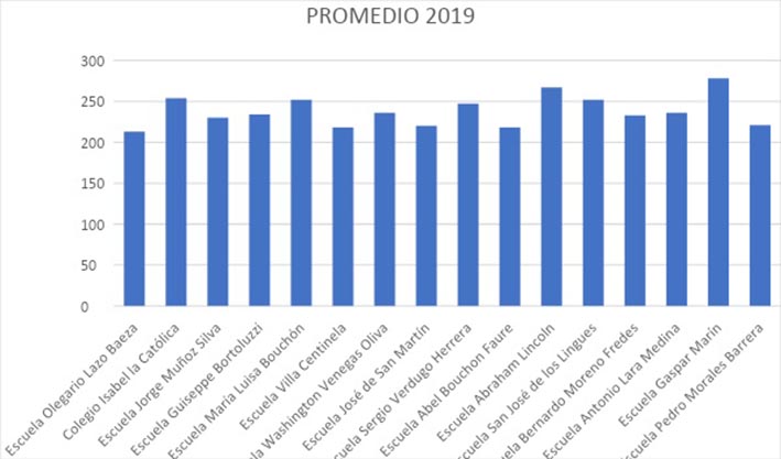 Machuca dio cuenta que la Escuela Abraham Lincoln tuvo un promedio general entre las tres materias evaluadas de 267 puntos, sobre la media nacional que fue de 251. En tanto, la Escuela Gaspar Marín obtuvo 278 puntos, destacándose también las escuelas Isabel La Católica (254), San José de Los Lingues (252) y María Luisa Bouchon (252).