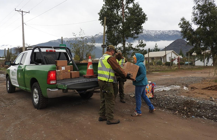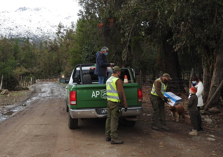 Ante el requerimiento de la directora del establecimiento educacional, Guirnalda Riquelme Villalobos de colaborar en la entrega de las cajas de mercadería a los estudiantes, el personal policial se desplazó a esos sectores apartados de Puente Negro junto a un paradocente de la escuela y a la presidenta de la junta de vecinos de Sierras de Bellavista Jeanette Castillo Pizarro.