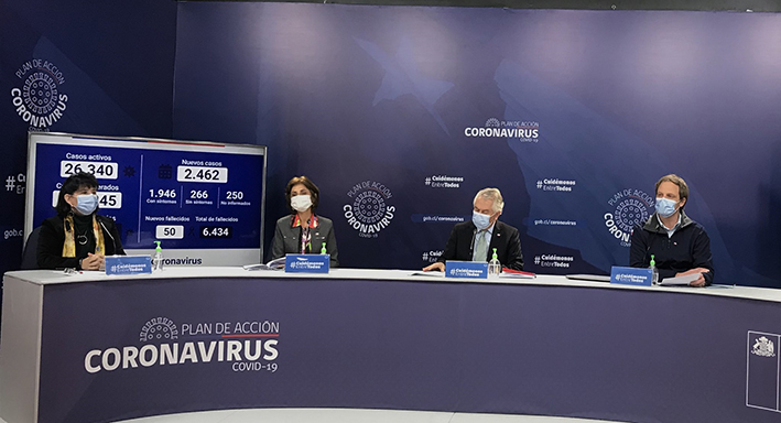 Posteriormente, el subsecretario de Redes Asistenciales, Arturo Zúñiga, entregó las cifras del reporte diario. La situación en Chile, de acuerdo a los casos reportados es la siguiente: 2.462 casos nuevos de COVID-19, de los cuales, 1.946 son personas sintomáticas y 266 asintomáticas; y 250 son PCR positivo no notificado.
