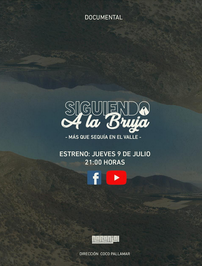 Hoy a través de la redes sociales el publicista Diego "Coco" Pallamar estrenará el documental "Siguiendo a la Bruja" en la cual se mostrará la sequía que afecta al sector de El Naranjal en la comuna de San Vicente de T.T. y el impacto de la mano del hombre en la naturaleza, como una forma de crear conciencia del daño que provoca sus actividades en el ecosistema.