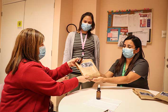 "Para usar las Flores de Bach, aplicamos una ficha en que las personas nos escriben sus síntomas, sus malestares, cómo están pasando los días. En base a ello elegimos las esencias para armar su frasco personalizado", indicó la psicóloga del SSO, Paola Cavieres. Por su parte, la terapeuta Yamila Roldán, agregó que "Los beneficios son poder recuperar un poco de calma, de tranquilidad, venir a trabajar de mejor forma, sin dolencias físicas. Hay un común denominador en las fichas de los funcionarios que es el alto nivel de estrés, miedo de poder contagiarse a uno mismo y a los más cercanos".-