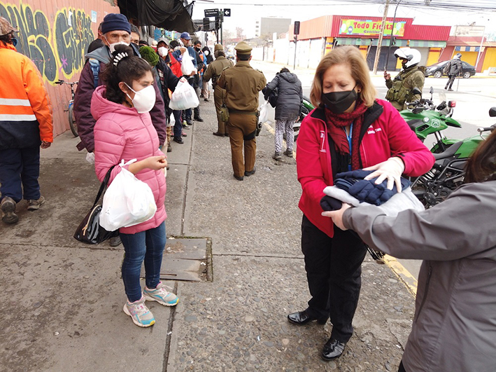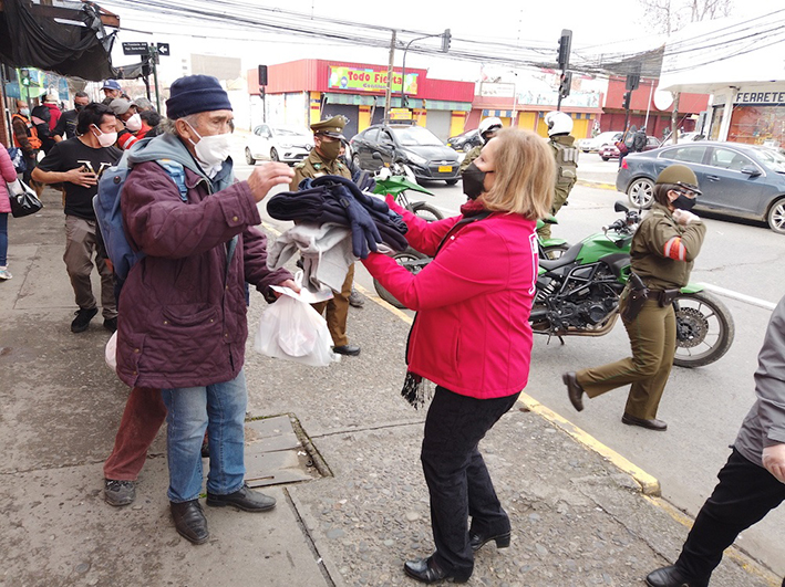 Las autoridades, junto a funcionarios de Carabineros de Chile, se desplazaron hasta los puntos calles de Santa María con Mujica, y el sector Estación, de la comuna de Rancagua, donde entregaron los kits y conversaron con las personas en situación de calle. En este sentido, la seremi puso a disposición la oferta del Ministerio de Desarrollo Social y Familia que tiene para ellos, y los invitó a los dos albergues que se encuentran funcionando en la comuna, modalidad 24/7.