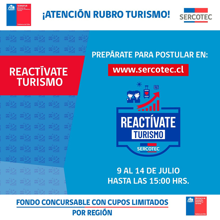 Asimismo, el director regional de Sercotec, Sebastián Osorio, señaló, "Estamos muy contentos de poder relanzar este programa Reactívate de Turismo, que está enfocado para la industria turística, que se ha visto fuertemente afectada por la crisis sanitaria en nuestro país. Te invitamos a postular a través de www.sercotec.cl, subir tu carpeta tributaria, y vas a estar participando de este fondo que entrega hasta tres millones de pesos sin aporte empresarial. La invitación es que todas nuestras pymes de la industria del turismo puedan participar de este fondo Reactívate".