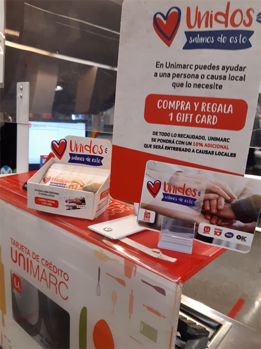 Con esta iniciativa, quienes quieran apoyar a una persona, familia u organización local podrán concretar su ayuda a través de la giftcard Unidos, con la cual los beneficiarios podrán adquirir alimentos e insumos de primera necesidad.