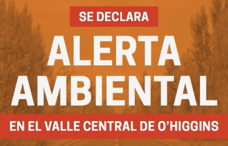 La Intendencia de O’Higgins declaró Alerta Ambiental para este martes 14 de julio, medida que rige entre las 0:00 y 24:00 horas en las 17 comunas que se ubican en la Zona Saturada declarada en el Plan de Descontaminación (PDA) de O’Higgins.