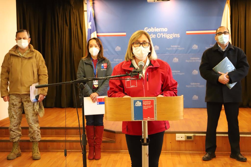 La intendenta Rebeca Cofre informó que los 103 nuevos casos corresponden a 28 personas de Rancagua, 11 de Doñihue, 10 de San Vicente, 7 de San Fernando, 5 en Rengo y Santa Cruz, 4 en Chimbarongo, Coltauco y Machali, 3 en Graneros, Malloa y Requínoa, 2 en Codegua, Mostazal, Olivar, Peumo y Pichidegua, un caso en las comunas de Coínco, Marchigüe, Nancagua, Navidad, Pichilemu y Quinta de TIlcoco.