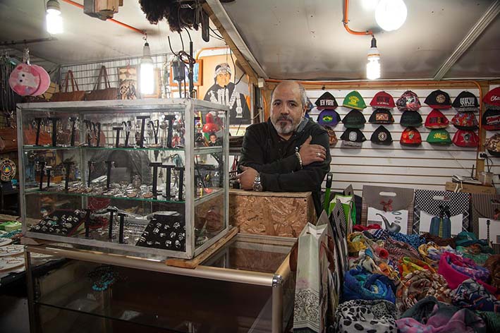 Gracias al apoyo de FE, el microempresario señala que pudo invertir en maquinaria y herramientas propias de su trabajo diario. En su mismo espacio de venta, fabrica joyas, anillos, pulseras, aros, cinturones y billeteras de cuero, platería mapuche y un sinfín de artesanías, a vista de todos los transeúntes que circulan en el lugar: "Mucha gente llega y les arreglo sus cosas, se las restauro. Aquí, el trato es directo con el cliente".