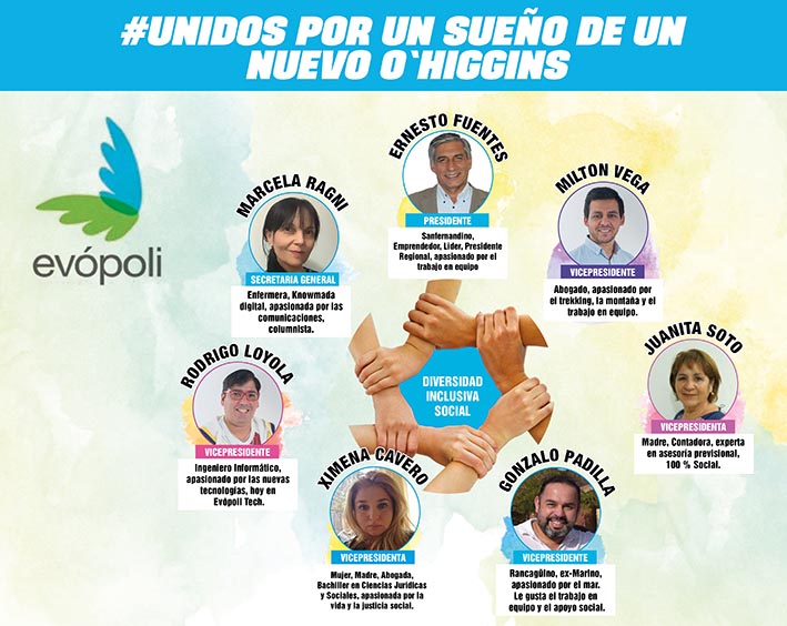 En el equipo de trabajo destaca la presencia de la Marcela Ragni, quien añadió que "Uno de mis objetivos en esta lista, como representante de la provincia del Cachapoal, es fomentar la participación de militantes y simpatizantes del partido sintiéndose como parte de un todo en la región. Para esto, es fundamental una sincronización junto a la capital provincial en cuanto a actividades, estrategias y proyectos realizables en terreno además de la escucha activa de todos nuestros militantes".