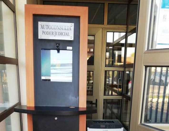 Asimismo, a un costado de este módulo de consulta se instaló una impresora en línea, que les permitirá a los mismos usuarios contar de manera inmediata a través de la misma funcionaria virtual, de todos los oficios, formularios de pago y actas de audiencia requeridos para efectuar algún trámite puntual ante cualquier otra institución.
