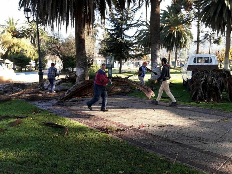 Por otra parte, la cuadrilla municipal también salió a la calle para despejar caminos obstruidos por troncos de gran envergadura y cables eléctricos, además de la limpieza de la plaza de armas luego de la voladura de ramas, el arreglo del estadio municipal (que sufrió daños en sus graderías y camarines) y la asistencia a hogares afectados por la voladura de techos, entregando kits de emergencia coordinados por el Municipio de Chimbarongo.