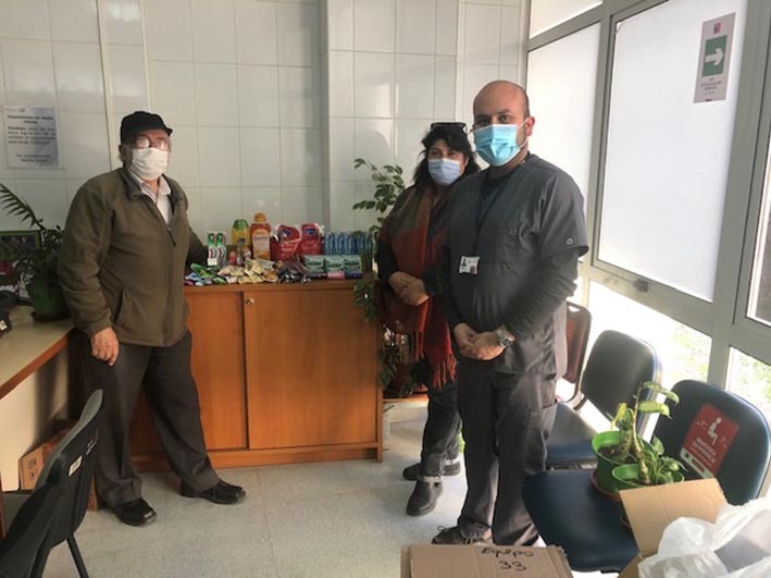 La organización comunal en conjunto con comercio local y voluntariado que va en ayuda de usuarios tanto de hospitales como de residencias sanitarias.