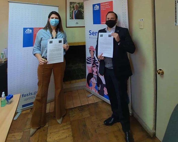 El acuerdo fue firmado por el director Regional del FOSIS, Juan Ignacio Pino Manubens; y por la directora Regional de Sernameg, Francisca Becerra Muñoz, y su objetivo es que, a través de la oferta programática de FOSIS, se entregue más oportunidades a usuarias de los programas de Sernameg "Mujeres Jefas de Hogar", "Mujer Emprende" y "4 a 7". La idea es que la mujer siga avanzando en su inserción en el mundo del trabajo remunerado para obtener mayor bienestar personal, a su familia y, a su vez, pueda contar con redes de apoyo para el cuidado de sus hijos mientras trabaja.