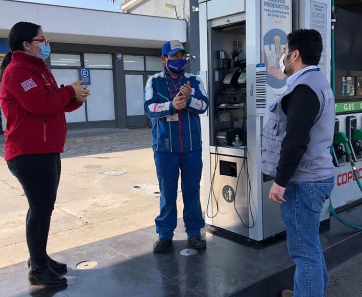 En la bencinera se fiscalizaron las medidas sanitarias contra el Covid-19 y se revisaron los permisos colectivos de los trabajadores, como también la implementación de los protocolos establecidos en el plan Paso a Paso Laboral. La PDI solicitó los permisos de desplazamiento a los clientes.