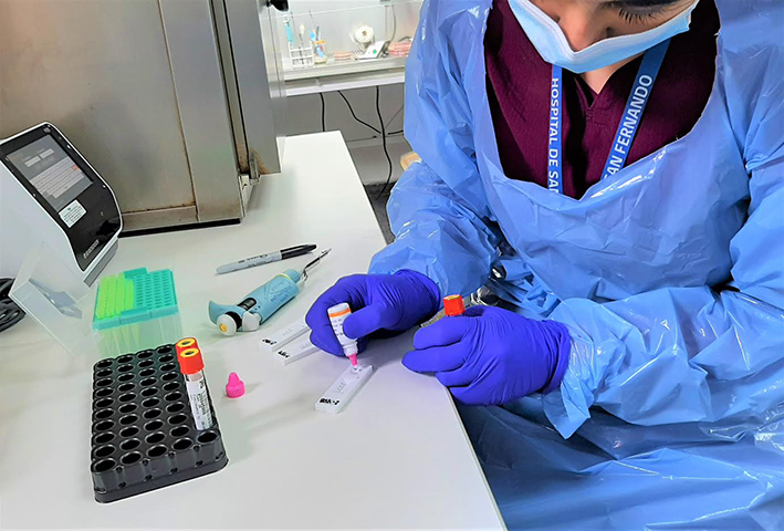 Los anticuerpos son muestra de sangre venosa que se analizan en Laboratorio, “siguiendo los protocolos y las medidas de bioseguridad que requieren. Ese análisis se hace en equipos que son semiautomatizados, ya que entregan una lectura que es óptica, la cual se interpreta si es positiva o negativa la imunoglobulina”, agregó el profesional.
