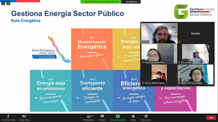 Con una videoconferencia que convocó a funcionarios de diferentes servicios públicos, se realizó la Jornada de Capacitación de “Gestores Energéticos”, iniciativa que estuvo liderada por el Seremi de Energía, Pedro Pablo Ogaz, para implementar las medidas que permitan el uso eficiente de la energía con el fin de reducir los gastos energéticos en la Administración del Estado, dando una importante señal de eficiencia en el uso de los recursos públicos.