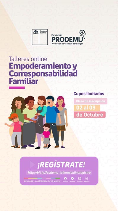 Para tener mayor información visita nuestro sitio web www.prodemu.cl. O haz click en el link http://bit.ly/Prodemu_talleresonlineregistro