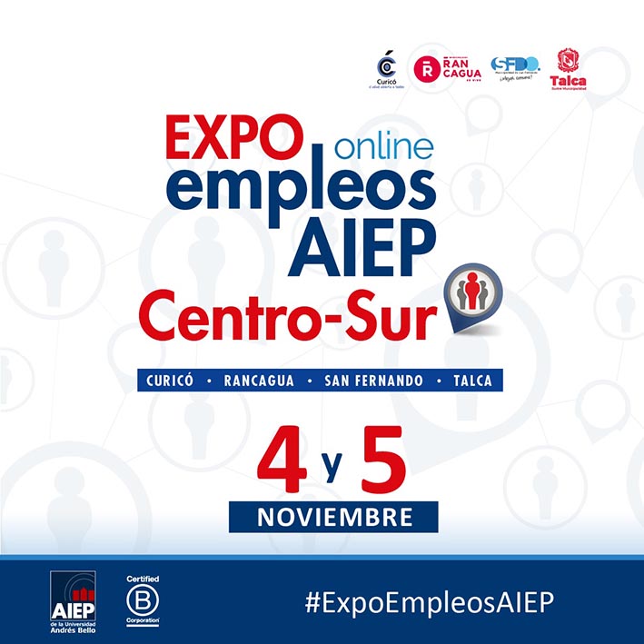 En ese marco AIEP llevará a cabo la 1° Expo Empleos Centro Sur, oportunidad en la que más de 60 empresas de las regiones de O'Higgins y el Maule ofrecerán más de 4 mil cupos laborales, incluyendo puestos para personas con discapacidad y gente de la tercera edad.