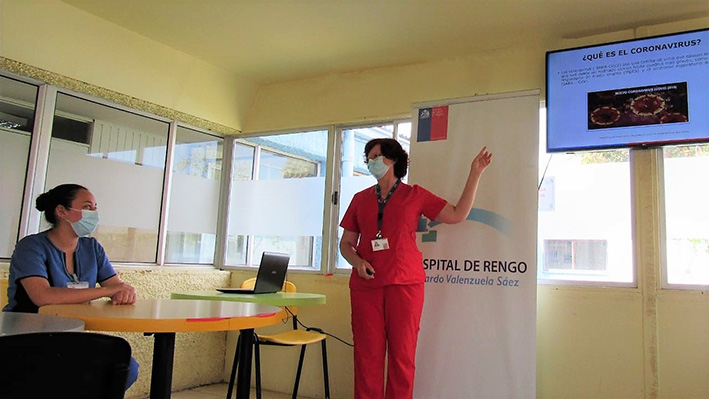 La expositora, la matrona del Hospital de Rengo, Verónica Sánchez, explicó que "El personal está motivado, ya que en nuestras capacitaciones son participativos y el estar recordando constantemente las medidas les ayuda a seguir fortaleciendo las conductas que tenemos que ir adoptando a lo largo de esta pandemia. Por otra parte, a medida que se han ido mejorando las condiciones a nivel nacional respecto a la pandemia, las personas tienden a olvidar las medidas básicas de prevención y son las que tenemos que estar reforzando constantemente".