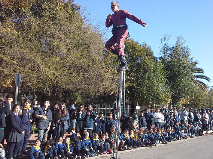 PALMILLA; Con una singular y alegre rutina el brasileño Elías de Souza, llegó a la localidad de San José del Carmen de El Huique en Palmilla, quien hizo un alto en su recorrido por todo Chile para mostrar acrobacias en las bicicletas más grandes y pequeñas del mundo, lo que fue disfrutado por cientos de niños que acudieron desde Santa Matilde, Los Olmos y distintos sectores al frontis del liceo San José.