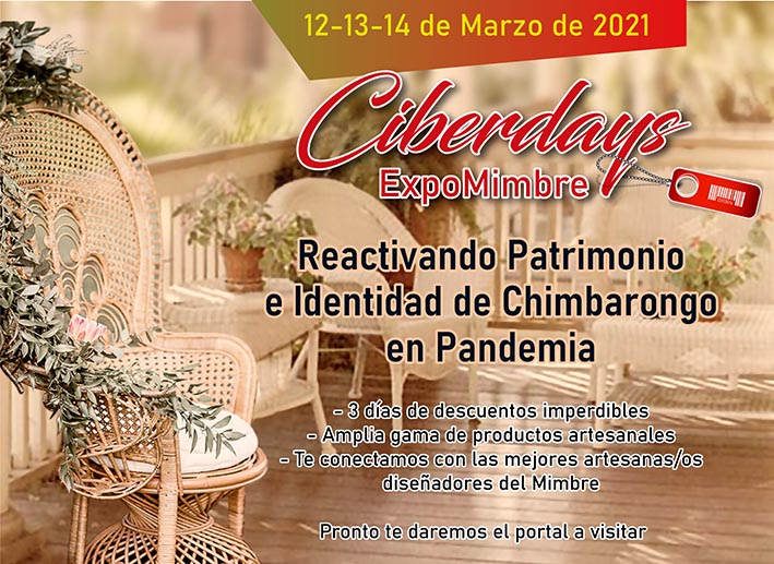 Se trata de "Ciberday EXPOMIMBRE 2021". Evento que busca llegar hasta el último rincón del territorio nacional con un concepto de venta on-line, habilitando un portal de difusión por tres días (12, 13 y 14 de marzo de 2021) para que los artistas puedan mostrar y vender una amplia gama de productos artesanales con ofertas realmente imperdibles.