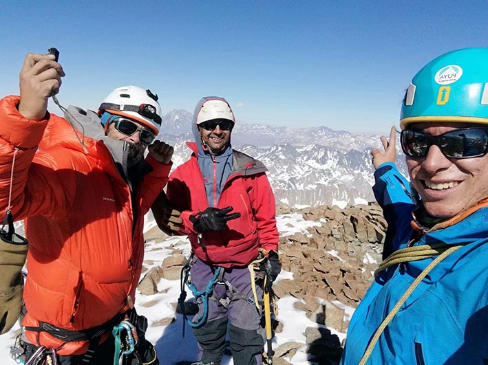 El resto de la expedición señaló que: "Era inminente, íbamos caminando por los últimos metros hasta la cumbre, el espíritu se conmueve y es imposible aguantar las ganas de llorar... nos abrazamos y con un par de gritos de celebración nos dejamos llevar por el éxtasis del momento. Acabábamos de cumplir un sueño, teníamos una panorámica completa de la Sierra del Brujo y de toda la cordillera desde los 6000's de la región metropolitana hasta los Volcanes del Maule, más gritos y abrazos, hartas fotos y para abajo... Son las 5 de la tarde. La cumbre era solo la mitad del viaje, ahora restaba el descenso pues aunque no lo crean subir es la parte más fácil dentro de todo, el verdadero logro es volver con todo el equipo sano y salvos".