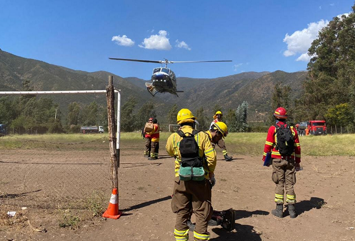 En las labores de control y extinción del fuego trabajaron cinco brigadas de la Corporación Nacional Forestal, apoyadas por cinco helicópteros.