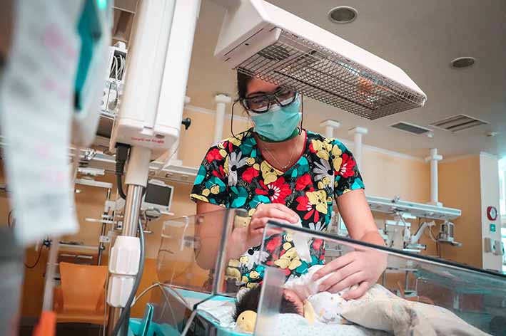 Estos recién nacidos no completan su ciclo intrauterino, por lo que desarrollan diversos problemas respiratorios, cerebrales, alimenticios, de desarrollo, entre otros. Es por ello que el HRLBO, como centro de referencia regional, recibe a los bebés prematuros en las 42 camas neonatales de la UPC Neonatológica (UCIN y UTIN), para brindarles la atención médica necesaria y así facilitar su desarrollo.