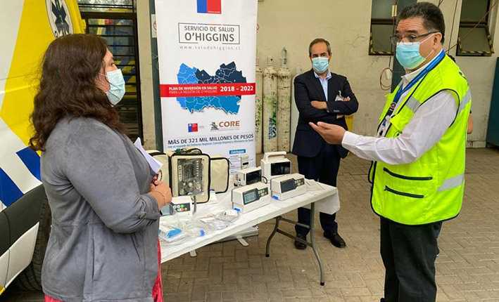 Los monitores multiparámetros son de tamaño pequeño, que están diseñados especialmente para el traslado de pacientes que requieren monitorización continua y se destinarán a las ambulancias de Pichilemu y Santa Cruz, mientras que las bombas de infusión continua cuentan con una base de datos incorporada de más de 500 medicamentos que son administrados vía intravenosa y se incorporarán a las ambulancias avanzadas de Rancagua, Rengo y San Fernando. En tanto, el ventilador mecánico de transporte tiene la ventaja de poder conectarse a distintos tipos de corriente, incluso en situaciones de rescate aeromédico, además de contar con una capacidad de funcionamiento autónomo de casi 6 horas, por lo cual se destinará a la base de Rancagua para los casos de mayor complejidad.