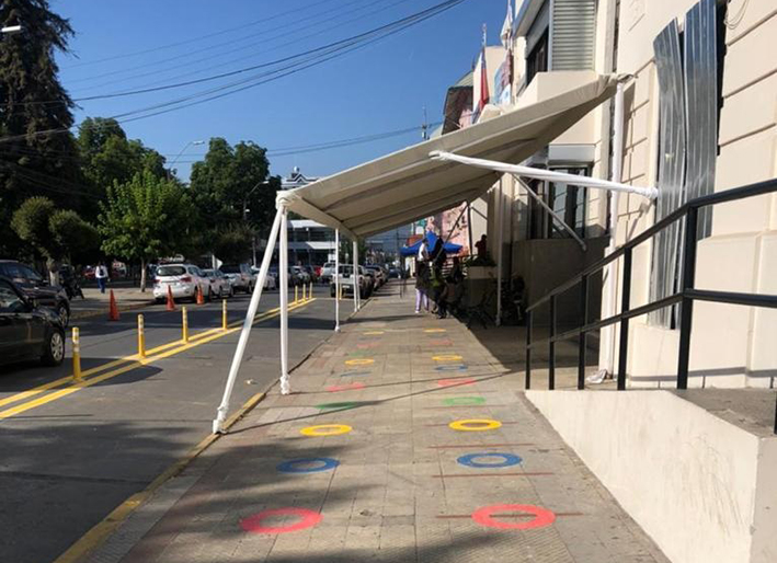 Este proyecto diseñado por los profesionales de la Secretaría Comunal de Planificación (Secplan) y financiado por la Subdere, considera pintar en el pavimento círculos cada 1,50 metros, distancia social segura recomendada por el Minsal.