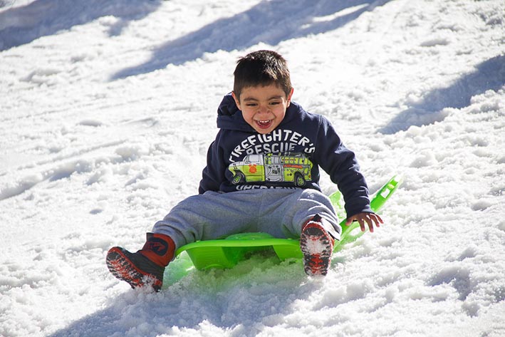 Los buses conducen a las familias hasta la rotonda 20 de Portillo cerca del Paso Los Libertadores, donde niños y grandes disfrutan del hermoso paisaje y se entretienen en la nieve hasta pasado las 16:00 Hrs, que es el horario de regreso a sus hogares.