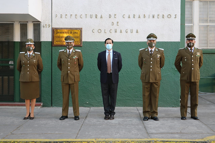 De esta forma, es que junto a los comandantes de la unidad colchagüina participó del izamiento de la bandera en el frontis del edificio institucional. Luego, entregó un presente, dio un reconocimiento a seis efectivos y recorrió las dependencias para saludar personalmente a todo el personal.
