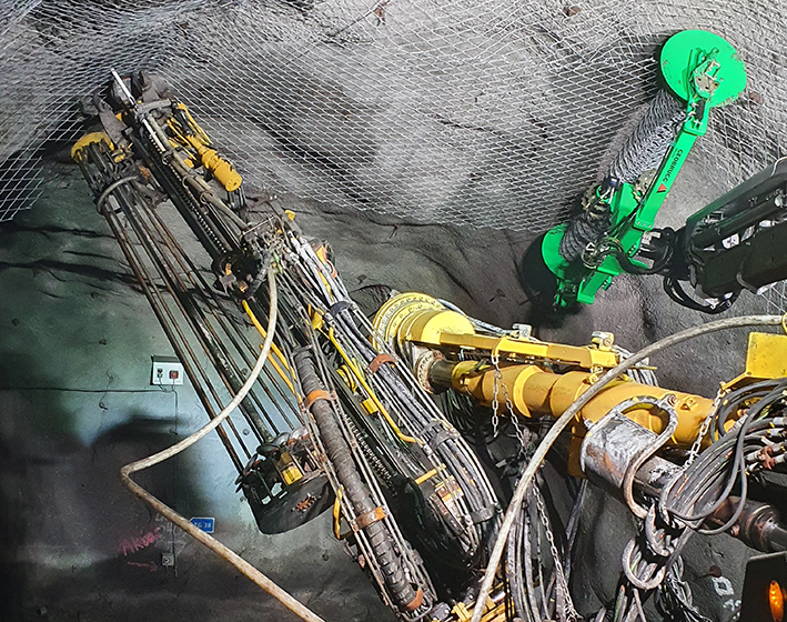Esto en el marco del proceso de instalación de la malla MINAX, con el dispositivo de Geobrugg MESHA, que se realiza sin personal expuesto en la frente sin fortificar, y que se desarrolla -por ejemplo- en División El Teniente de Codelco-Chile.