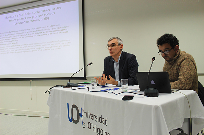El autor de varias obras sobre pobreza, precariedad y solidaridad, y quien también es responsable del Equipo de Investigación sobre las Desigualdades Sociales (ERIS) del Centro Maurice Halbwachs en París, dictó la conferencia "Aprender la solidaridad en la Universidad: el proyecto sociológico de Durkheim, un siglo después", en el Campus Rancagua.