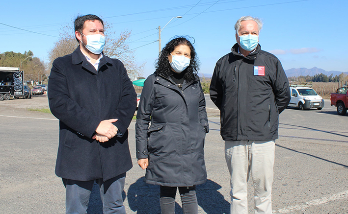 La alcaldesa de Palmilla, Gloria Paredes Valdés, preocupada por los distintos accidentes de tránsito que han ocurrido en el cruce La Estampa, en la Ruta 90, se reunió en terreno con el Seremi de Obras Públicas Moisés Saravia y de Transporte Hans González.