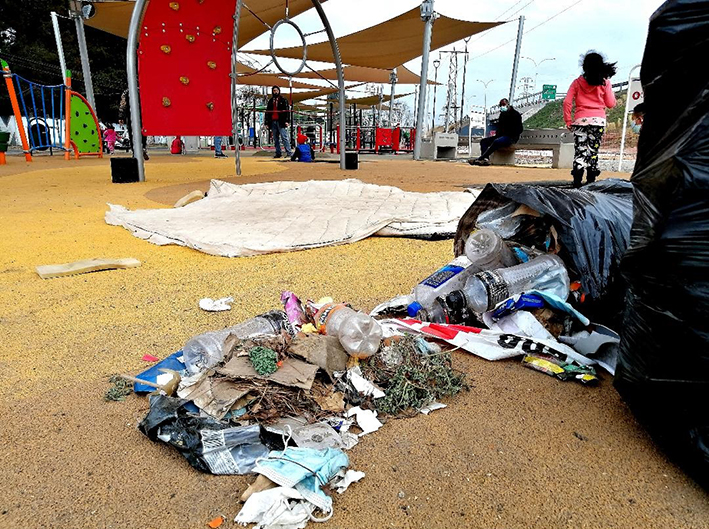 Sin embargo, a pesar de los esfuerzos voluntarios, el cuidado y mantención, se encuentra totalmente al debe. No es extraño apreciar en sus bordes, por ejemplo, acopio basura, enseres en desuso y piso manchado por la utilización de líquidos no permitidos sobre la carpeta.