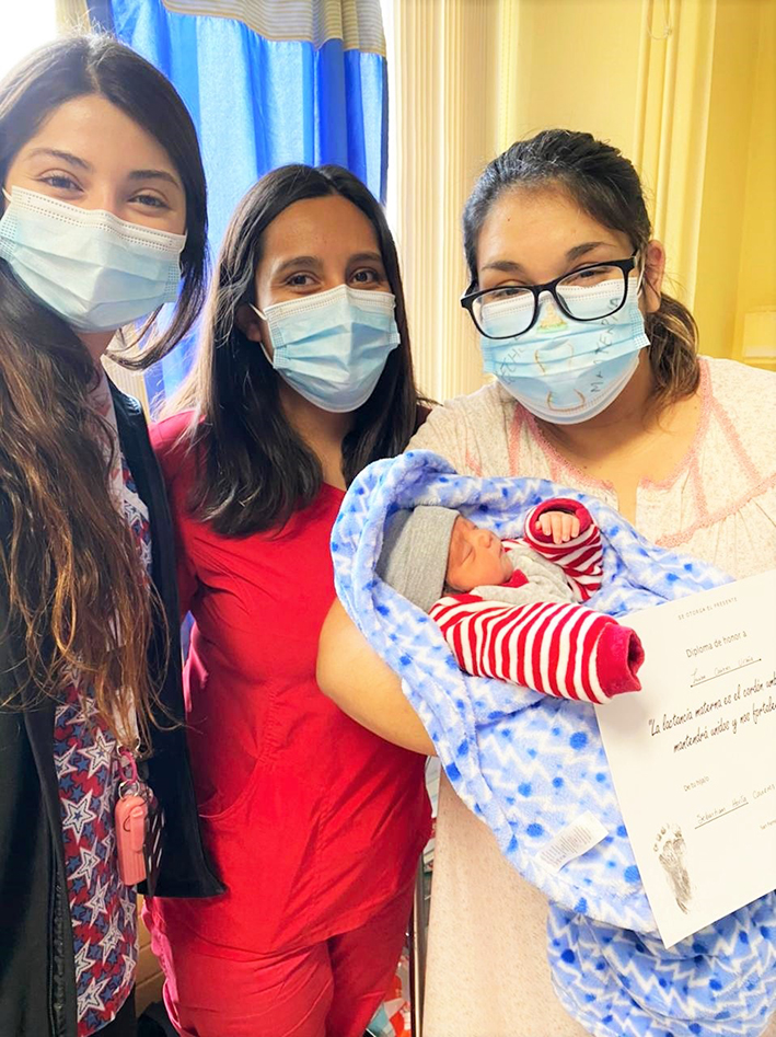 Javiera Lobos Gaete, matrona del Chile Crece Contigo, entregó detalles de esta iniciativa: "es una actividad desarrollada en conjunto con María José Cid, subdirectora de Matronería, donde nos surgió la idea de crear algo conmemorativo y emotivo para las madres: un diploma con un mensaje alusivo a la lactancia materna que es amor, es conexión y apego con el bebé, y quisimos plasmarlo dejando la huella del pie del niño o niña, con el nombre de ambos para que fuera más significativo".