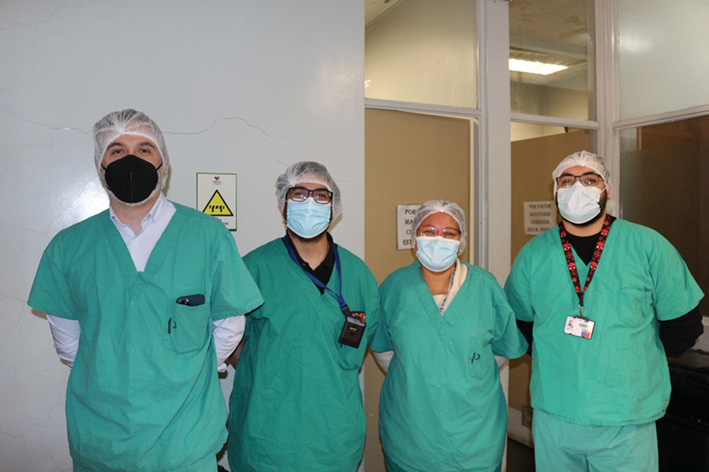 Cabe mencionar que, en esta inédita intervención quirúrgica, el Dr. Flores encabezó la cirugía como médico cirujano, acompañado por el Dr. Gabriel Vial Gaete, junto a un equipo completo de profesionales y técnicos del servicio de Pabellones Quirúrgicos, además de técnicos de la empresa externa y el profesional del Departamento de Informática, quienes "Se preocuparon de que esta transmisión fuera expedita. Incluso, trabajaron días previos a la cirugía para que no hubiera inconvenientes al momento de su desarrollo, con todas las pruebas realizadas", finalizó el Dr. Flores.