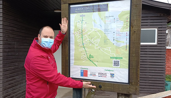 El director Regional del Fondo de Solidaridad e Inversión Social, FOSIS, de la Región de O'Higgins, Juan Ignacio Pino, llegó hasta la comuna de Navidad para participar en el cierre del programa Acción Local, iniciativa desarrollada junto a los vecinos y vecinas de la localidad de La Boca, con el apoyo del municipio local, proyecto que promovió la participación ciudadana y financió la implementación de equipamiento comunitario que viene a contribuir con la vocación turística de este bello sector.