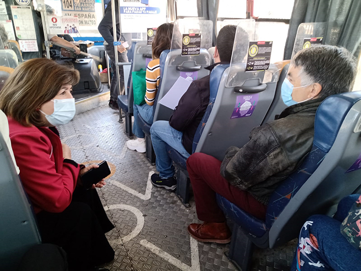 Uno de los pasajeros de la micro, Rolando Delgado se sorprendió gratamente al ver el mensaje en los respaldos de los asientos del transporte mayor, comentando "Me parece fantástico que se utilicen todos los mecanismos para hacer la difusión y que la gente tome conocimiento y se sensibilice en este tema, porque no es posible en nuestros tiempos seguir teniendo altas tasas de violencia contra la mujer, porque la violencia es un escalonamiento gradual de maltratos y que las mujeres tomen más conciencia que ese tipo de conductas no son permisibles, tienen que socializarlas y denunciarlas, es la única forma de cambiar el switch de esta sociedad tan machista", subrayó.
