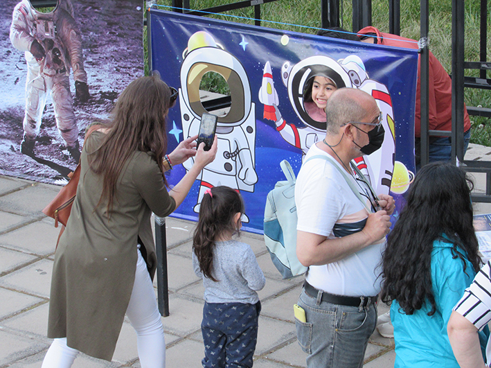 Los asistentes pudieron sacarse fotografías, hacer uso de los numerosos y potentes telescopios enfocados a diferentes planetas, estrellas y la Luna, además de preguntar y dialogar con aficionados muy entendidos en astrofísica. En los diferentes puestos o stand se podía ver y preguntar a especialistas en fotografía del cielo nocturno que mostraban sus instrumentos ópticos de gran potencia y nitidez de imágenes. Durante todo el tiempo de observación y a manera de ambientación se interpretaron composiciones musicales en vivo con la temática del cosmos y el universo, complementados con cortinas de humo y modernos rayos láser que deleitaron los sentidos de las familias asistentes a este evento.