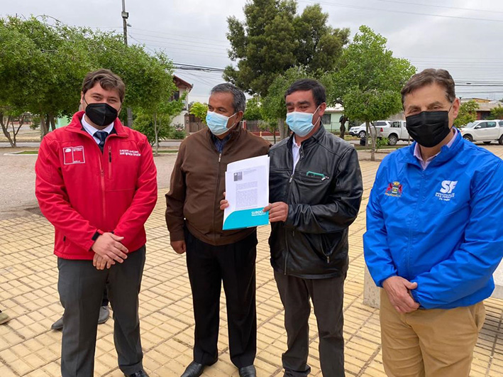 El alcalde Pablo Silva Pérez, junto al jefe de la unidad regional O'Higgins de la Subdere, José Ignacio Urrutia y el equipo Secplan, entregaron en forma simbólica a vecinos de la población Centinela y Villa España (sector norponiente de San Fernando); Agua Buena y Puente Negro la resolución que aprueba los recursos para ejecutar estos proyectos en postes existentes en calles y pasajes de mayor flujo peatonal y vehicular.