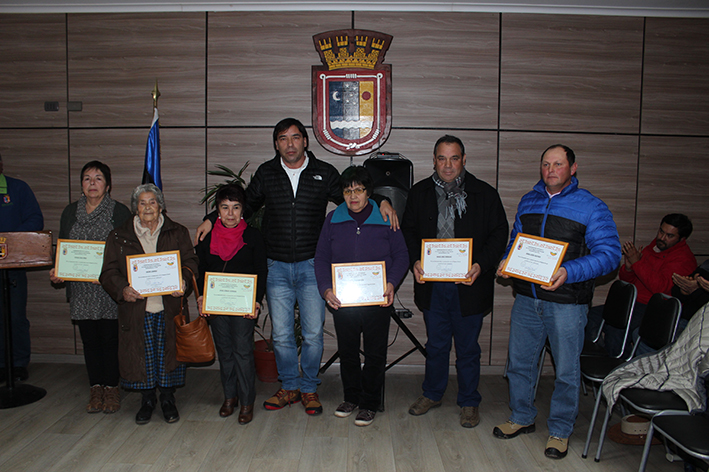 Luego el jefe comunal procedió hacer entrega de un reconocimiento a los dirigentes, Mónica Silva Pérez, Virginia Guajardo, Emilia Cornejo Contreras, Pedro Vargas Donoso, Manuel Arias Parraguez y Andrés Castro Palominos./