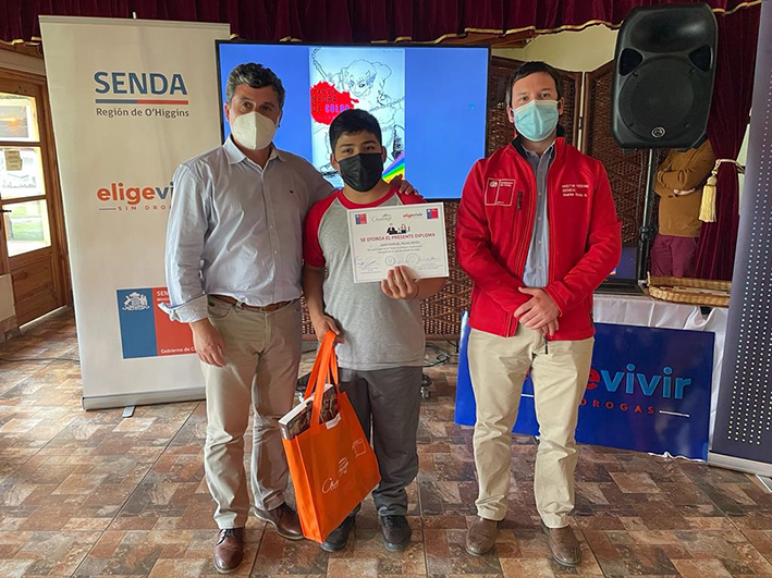 En el marco del ciclo de talleres artísticos-culturales organizado por la Seremi de las Culturas, las Artes y el Patrimonio y SENDA O'Higgins, seis estudiantes de la comuna de Chimbarongo fueron premiados por su participación en el curso "Dibujo e Ilustración", instancia en la que se les enseñó diversas técnicas artísticas con el propósito de incentivar este arte y así mantener alejados a los estudiantes del consumo de alcohol y otras drogas.
