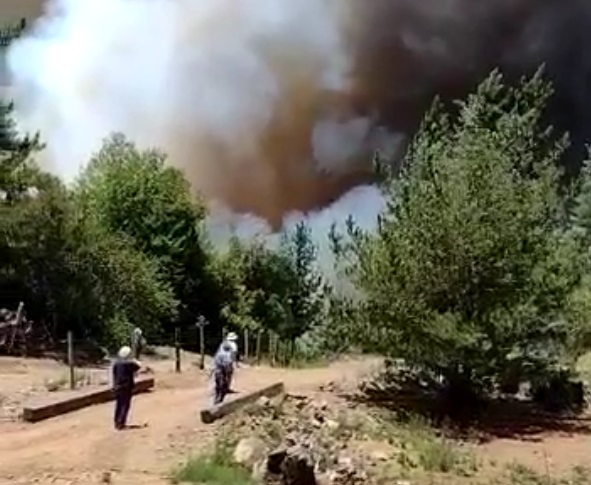 Por lo que se observado en los diferentes videos registrados en redes sociales, según reportaron desde el lugar de la emergencia, el incendio se habría originado en una plantación de pinos de Forestal Arauco.