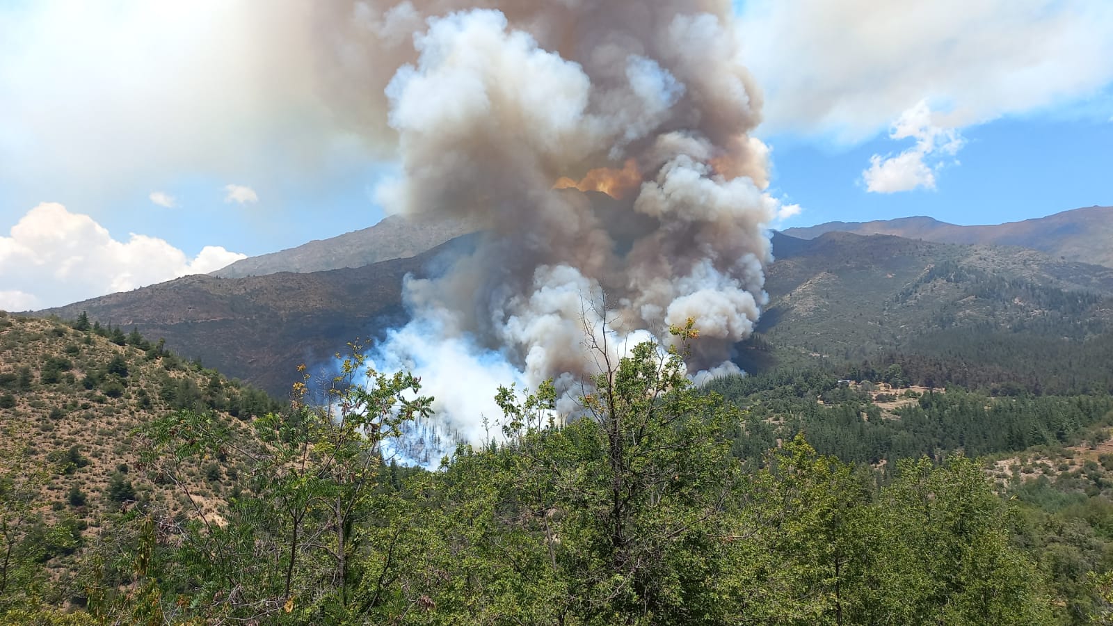 Al momento, el incendio había consumido más de 50 hectáreas de matorral, pino, bosque nativo y arbustos.